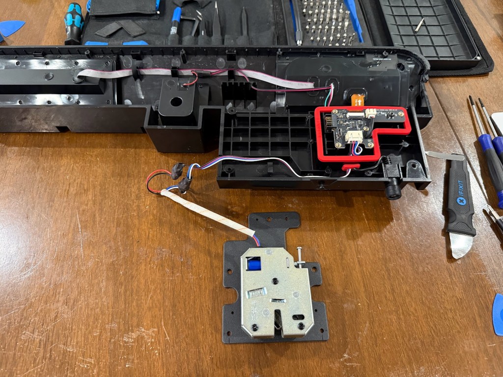 Finally, I was able to split the two halves of the Function Panel. Figure 8 shows the initial view when it was opened. The red outline is a gasket that protects the “Power PCB” which takes in the 12V jack power, distributes it to the camera/brain board, and controls/monitors the latch assembly.