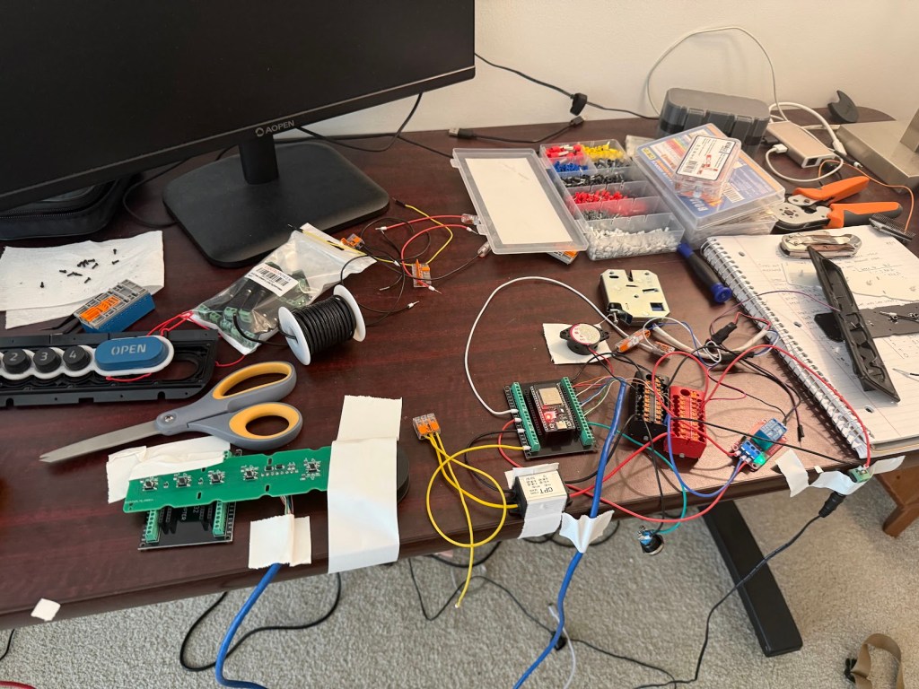 With the new button board, latch assembly, ESP32, terminal blocks, buzzer, and relay board wired up, the next step was to create the ESP32 code. To accomplish this, I created a design document that I fed into ChatGPT. It contained an overview of the project, guidelines for behavior, a detailed list of each input and output, credentials for WiFi and MQTT, and a list of configuration details. I’ve attached the latest design document below, which includes the hotspot functionality – when the device first boots, it will create a hotspot which the user can connect to and set the initial WiFi/MQTT configuration.