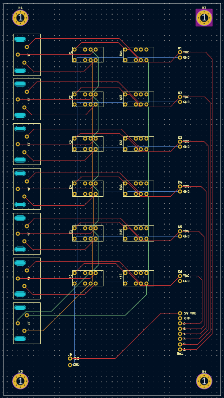 Designed and built an audio switch box that can select between 6 inputs. Designed a PCB using KiCad (see board layout to the right), created a 3D model of the project using OnShape, had the front and back panels cut, power-coated, and silk screened, and had a custom enclosure made from hardwood. See first blog post here for more details.